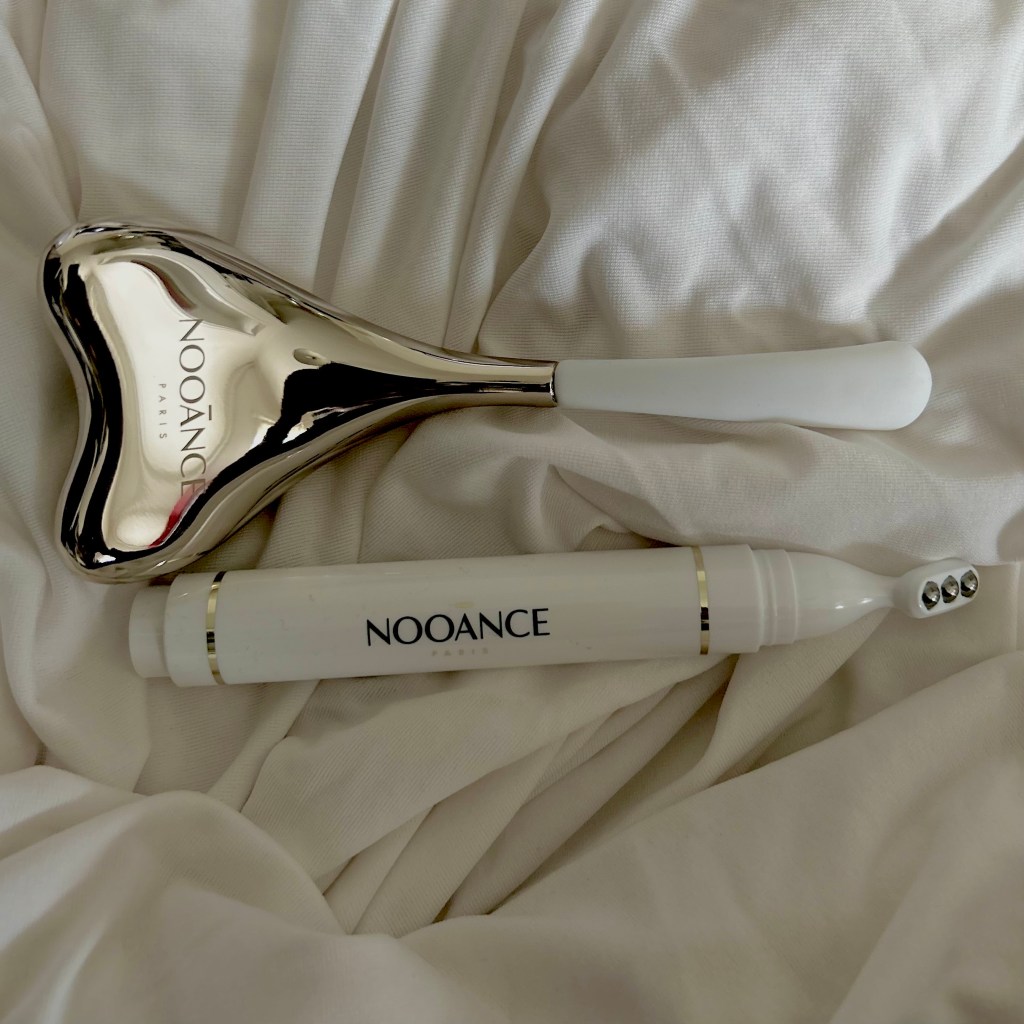 Ces dernières années, les dispositifs de technologie esthétique investissent nos salles de bains. Autrefois réservée aux centres de beauté, la luminothérapie et tous les beauty tools qui en découlent deviennent accessibles à la maison, grâce à des marques spécialisées telles que Nooãnce Paris ou Lucibel.le. Les masques à lumière LED pour le visage inspirés de la photothérapie, ou encore les cuillères de cryothérapie, offrent divers avantages à la peau. Ils luttent contre le vieillissement cutané, améliorent l’apparence des marques laissées par l’acné et favorisent le renouvellement cellulaire. Curieuses des pouvoirs de l’infrarouge et des LEDs, nous avons décidé de faire un petit voyage à travers ces soins qui illuminent nos visages !