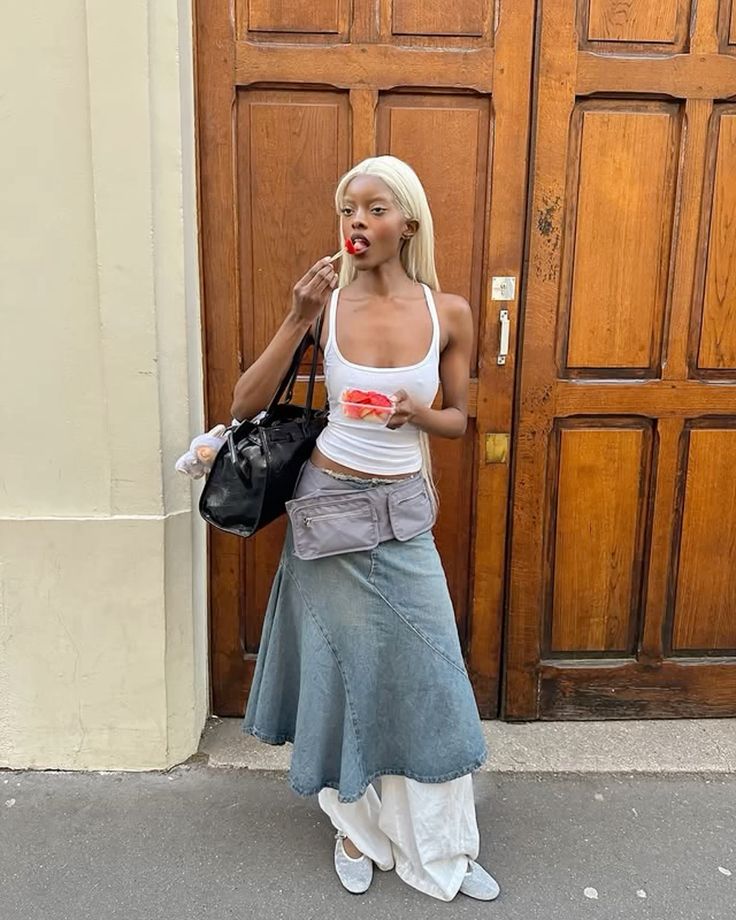 Elle est là, elle glisse sur les pavés, elle flotte avec assurance. Elle a ce petit air nonchalant mais ultra pointu. Et surtout : elle porte une jupe longue taille basse, et elle le sait. Et vous savez quoi ? Moi aussi, je le sais maintenant.