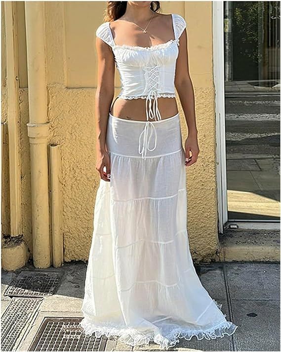 - Et si vous osez ? Version full look : jupe longue taille basse + mini top = combo été parfait.