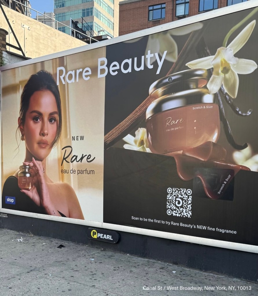 Selena Gomez sait comment captiver son public. Plus de dix ans après avoir marqué toute une génération dans Les Sorciers de Waverly Place, la chanteuse et fondatrice de Rare Beauty dévoile son tout premier parfum. Et pour ce lancement, elle ne fait pas les choses à moitié : des panneaux publicitaires scratch & sniff installés en plein cœur de New York, qui diffusent réellement l’odeur de la fragrance lorsqu’on les gratte. Une idée folle ? Peut-être. Mais surtout : brillante.