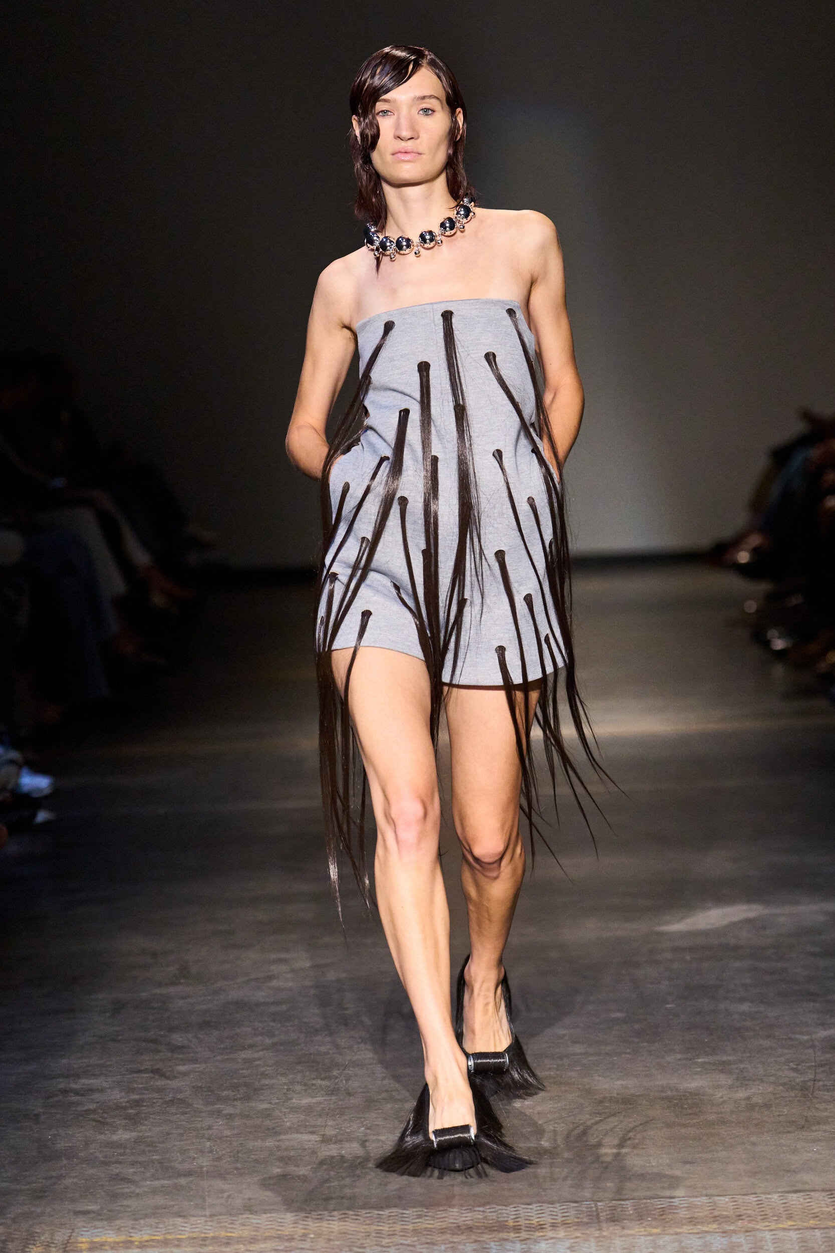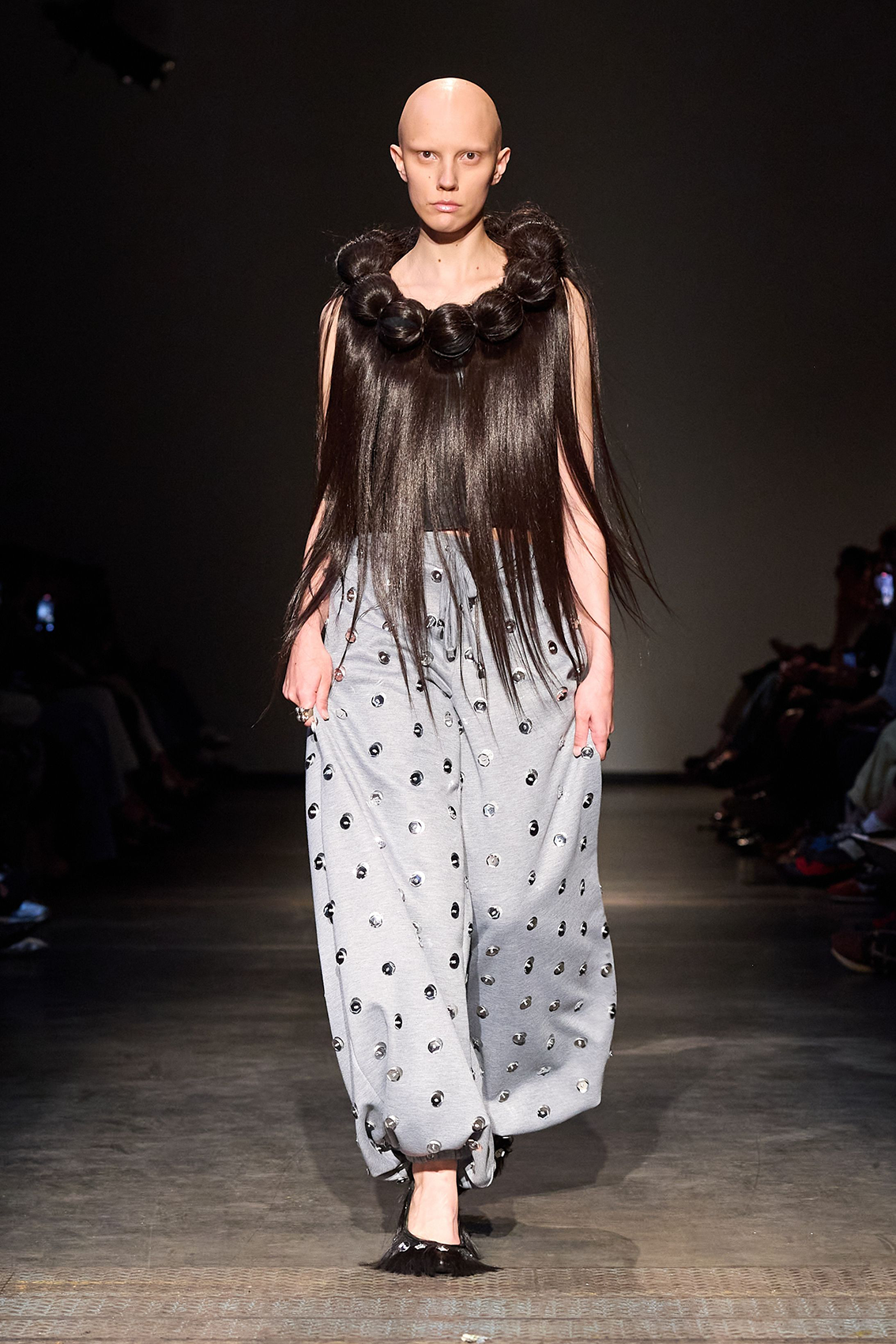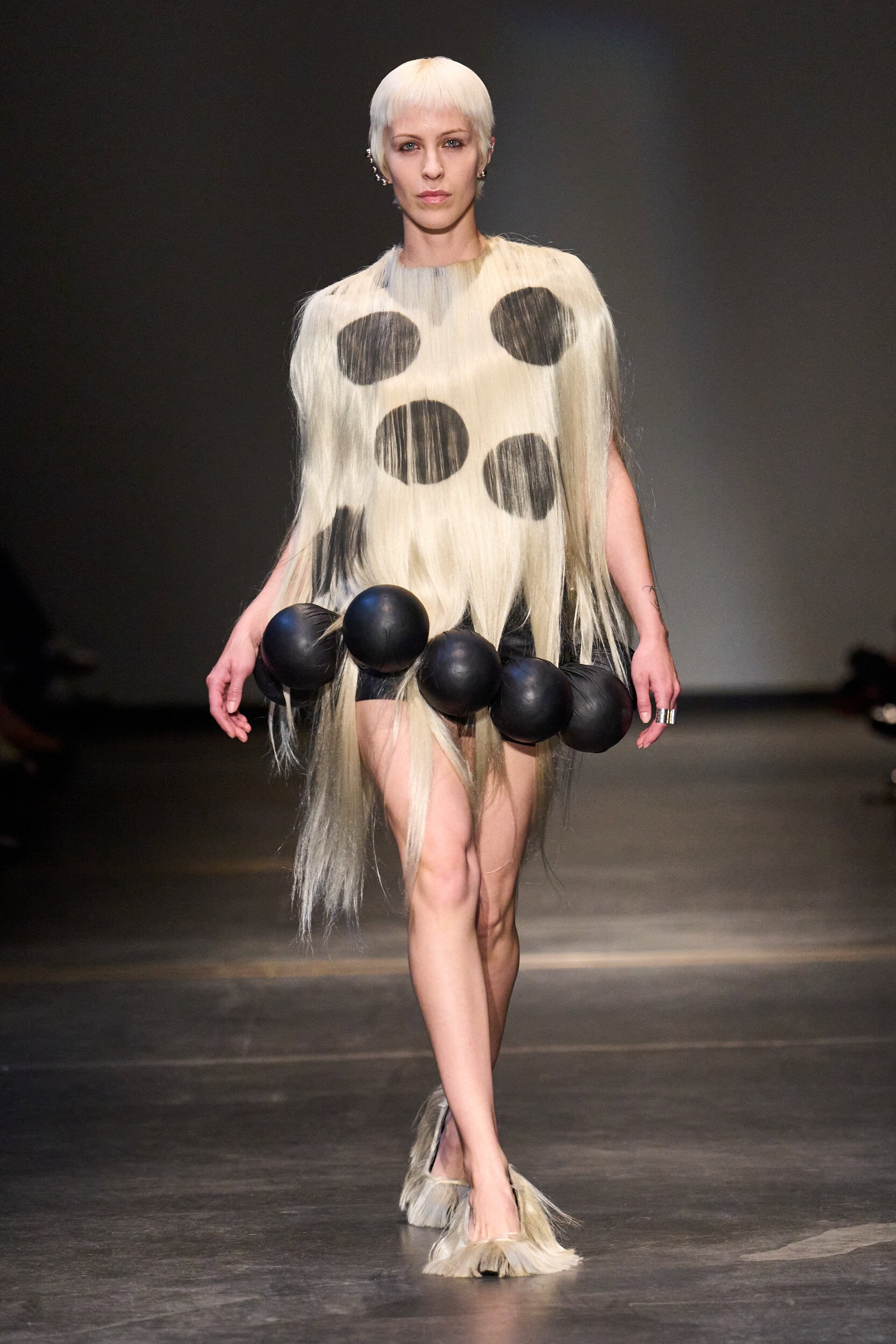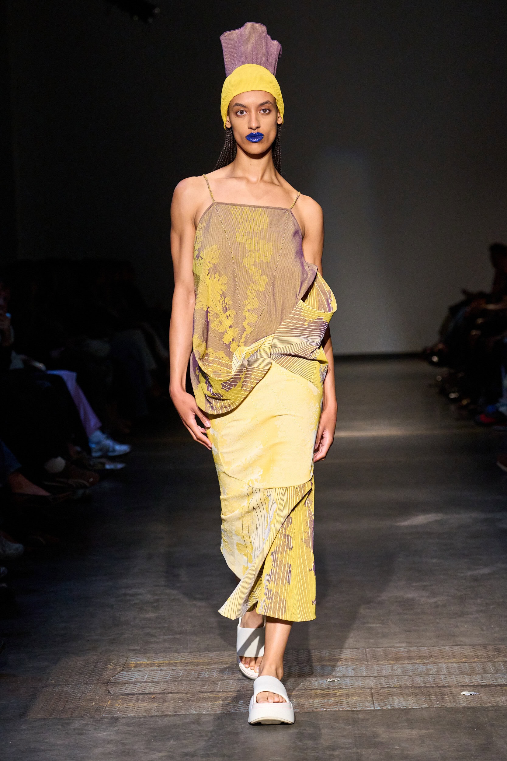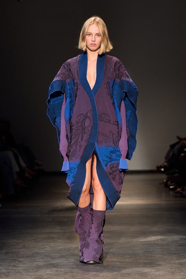 Parmi les créations, on a repéré des tricots numériques inspirés par les vagues de l’océan, ou des robes douces reconstituant l’intimité d’une chambre. D’autres pièces s’apparentent à des architectures portables : drapés organiques, silhouettes biomorphiques mêlant créativité et artisanat