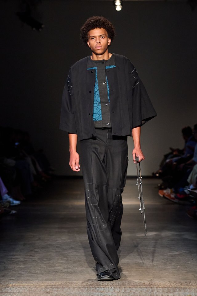 Ce défilé ne joue pas la surenchère visuelle, il raconte. Chez certains diplômés, comme celui dont la collection explorait l’expression queer naissante à travers chapeaux floraux et robes fluides, la féminité devient manifeste et personnelle. Pour d’autres, les blazers sont déconstruits, les coupes réinventées, questionnant la notion même d’identité vestimentaire.