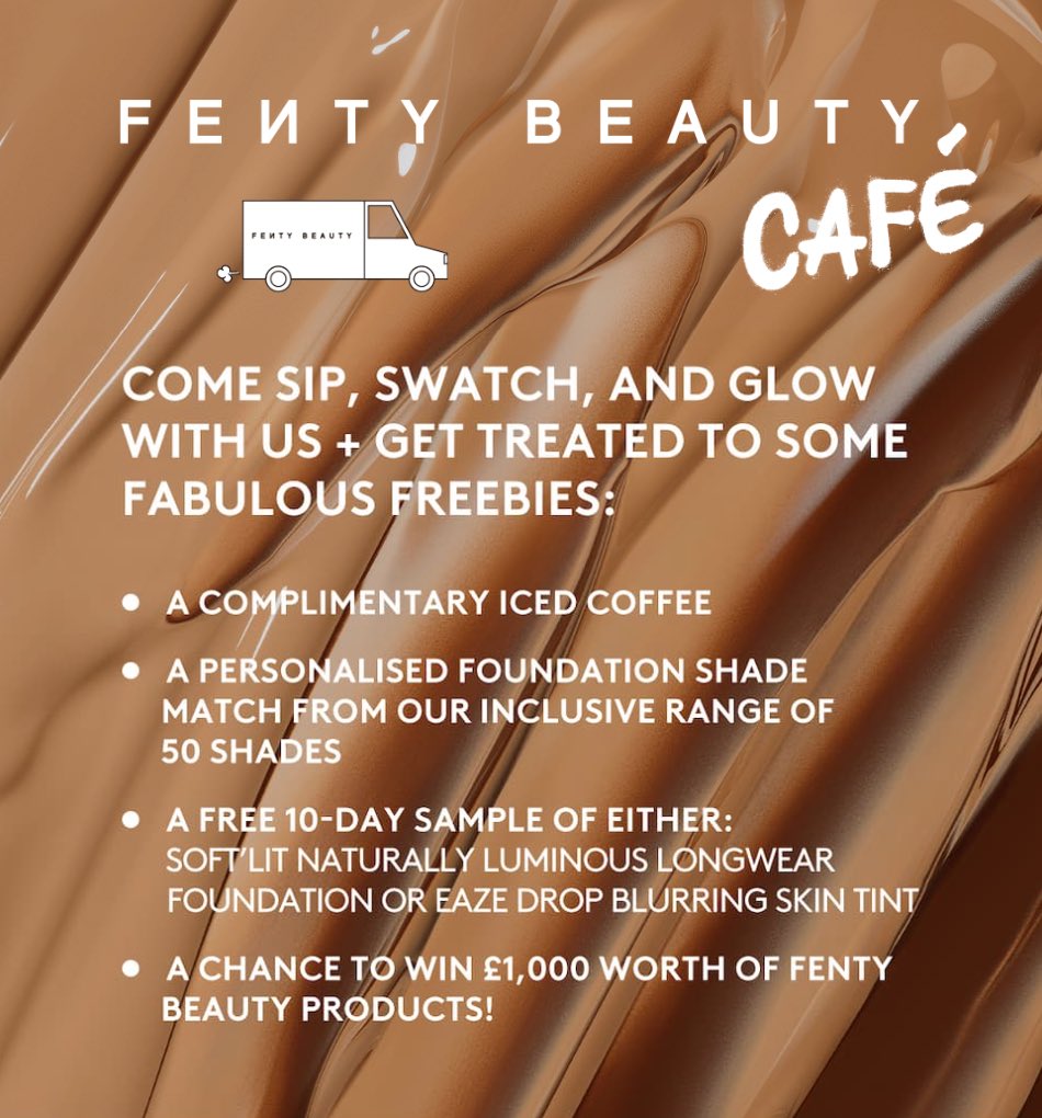 L’idée ? Permettre à chacun·e de découvrir en live les nouveaux primers Grip Trip (version hydratante ou matifiante), tester sa teinte optimale avec l’aide des maquilleurs pros de la marque, le tout autour d’un iced coffee offert. Bonus ? Vous pouvez tenter de gagner pour £1 000 de produits Fenty grâce à un tirage au sort.