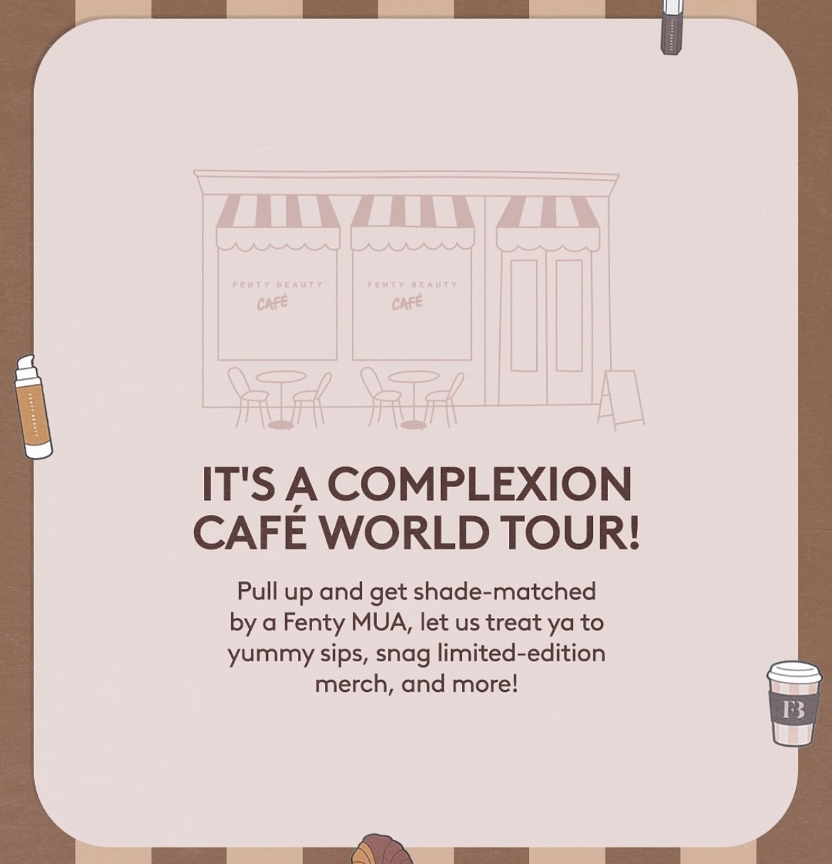 Fenty Beauty, la marque fondée par Rihanna en 2017, poursuit son credo d’inclusivité en lançant le Complexion Café, un pop-up itinérant qui subvertit le monde des stands beauté classiques. Pensé comme un hybride entre café cosy et boutique beauté, il met en avant deux vertus clés : l’interactivité et la proximité client.