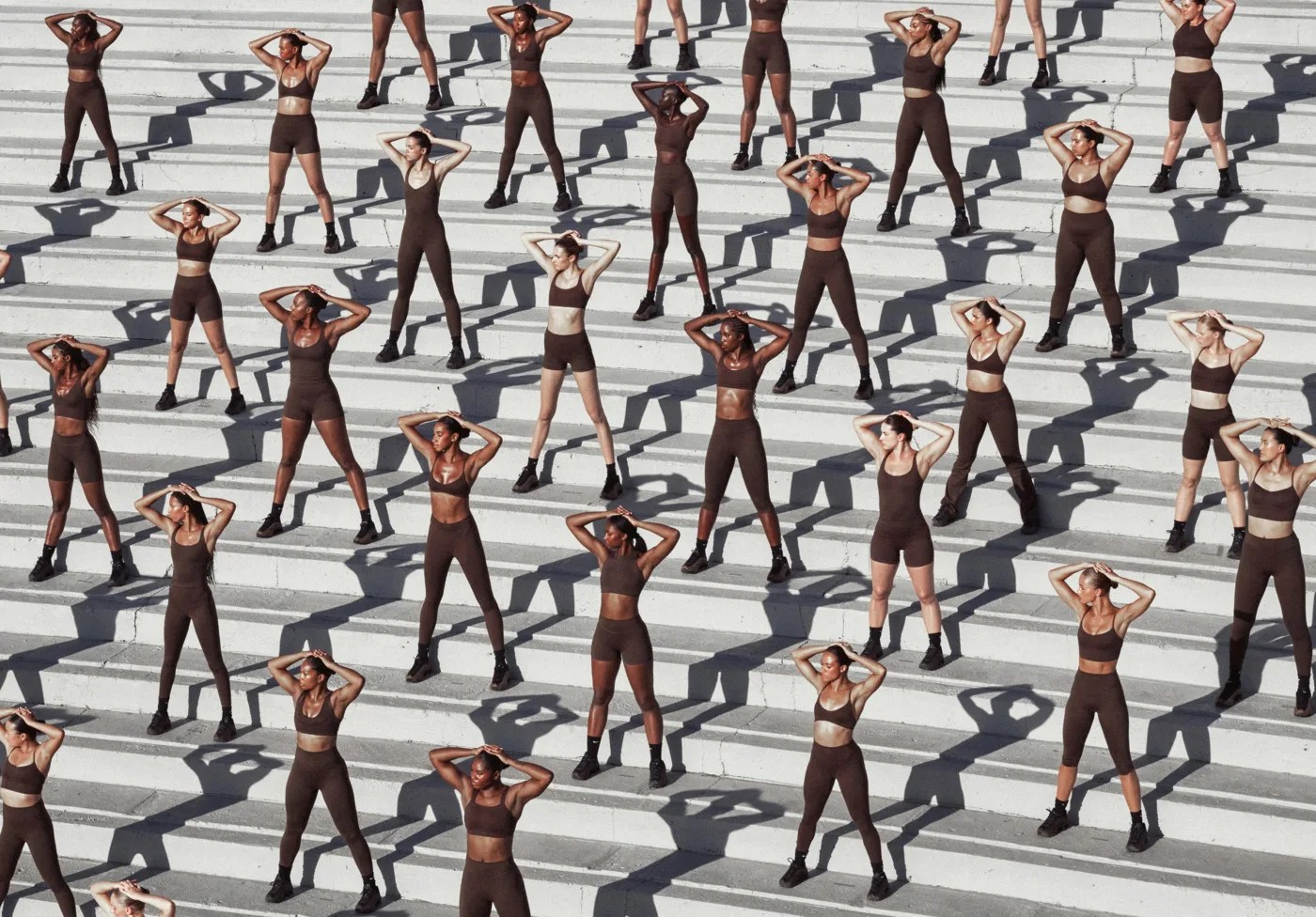 Photos & film visuel mettent en scène non seulement la performance — mouvements, effort, énergie — mais aussi le confort, le soutien, la sculpture du corps. Le tout dans une esthétique neutre, très SKIMS : tons sobres, textures variées, effets brillants ou mesh pour respirer.