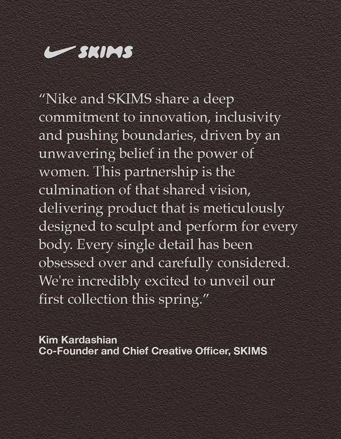 NikeSKIMS ne laisse aucun doute sur ses ambitions : la campagne “Bodies at Work”, réalisée par la réalisatrice Janicza Bravo, présente plus de 50 athlètes Nike, dont Serena Williams, Sha’Carri Richardson, Jordan Chiles, Chloe Kim, Nelly Korda, et bien sûr Kim Kardashian elle-même.