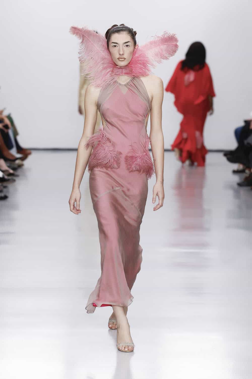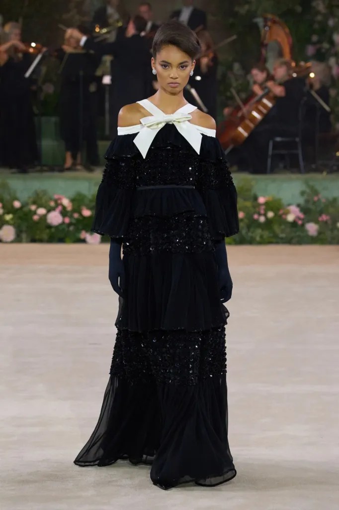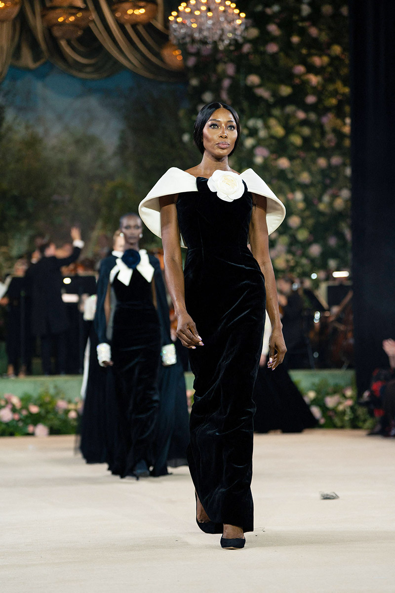 Richard Quinn a livré l’un des moments les plus spectaculaires de la semaine. Naomi Campbell a ouvert le show, donnant le ton d’une mise en scène théâtrale où couture extravagante et lyrisme dramatique se sont mêlés avec brio.