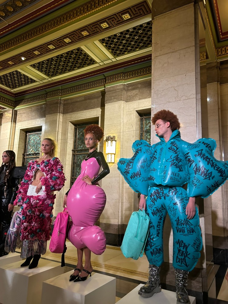 Impossible de passer sous silence le show Sprayground, auquel j’ai eu la chance d’assister. Pour la toute première fois, la marque new-yorkaise a défilé à la Fashion Week de Londres, et le pari fut explosif. Au Freemasons’ Hall, transformé en véritable playground de 47 silhouettes, Sprayground a marié streetwear et artisanat de luxe avec une énergie rare. Les sacs iconiques de la maison étaient revisités dans des déclinaisons spectaculaires, tandis que les silhouettes mixaient audace et inclusivité.