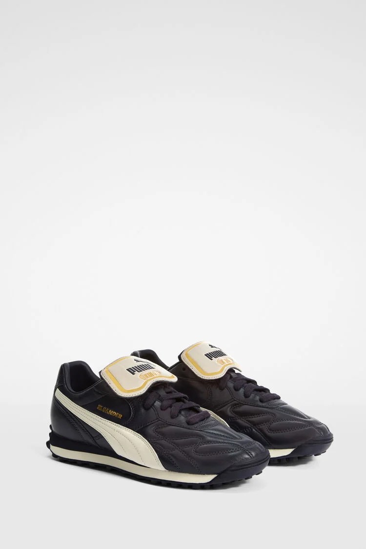 Leur nouvelle capsule signe le retour de la mythique Puma King, une silhouette culte revisitée dans un esprit d’une pureté absolue. Née sur les terrains de football et désormais transposée dans la rue, la King incarne ce que Jil Sander fait de mieux : transformer la performance en esthétique, et la simplicité en déclaration. Le cuir lisse, les lignes tendues, les finitions ton sur ton… tout respire la rigueur et la précision caractéristique de Simone Bellotti, le directeur artistique actuel de la maison, arrivé en mars dernier.