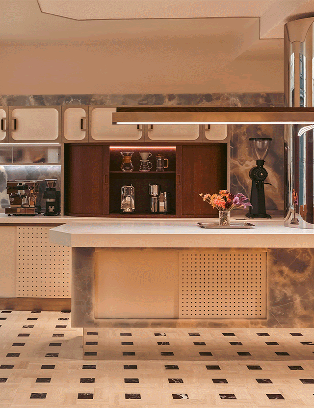 Derrière la porte cochère, on découvre une cour pavée, baignée d’arômes torréfiés et de lumière naturelle. Ici, le café ne se déguste pas seulement : il se vit. Cinq pièces thématiques ont été imaginées pour explorer l’univers Nespresso sous toutes ses formes — de la découverte olfactive à la dégustation immersive, en passant par des parenthèses ASMR et des collaborations exclusives.