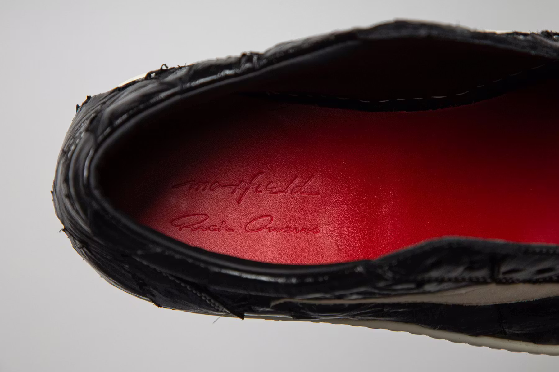 Moment mode très attendu également (et qui ne date pas de cette semaine j’avoue tout) : Maxfield s’associe à Rick Owens pour leur toute première collaboration footwear. Une rencontre évidente entre l’esthétique radicale du créateur et l’univers ultra pointu du concept store. Le résultat ? Des chaussures qui flirtent avec l’objet d’art, sombres, sculpturales, puissantes, et résolument Rick Owens. Une collab qui parle aux initiés, mais qui marque surtout une nouvelle étape dans l’expansion de son univers.