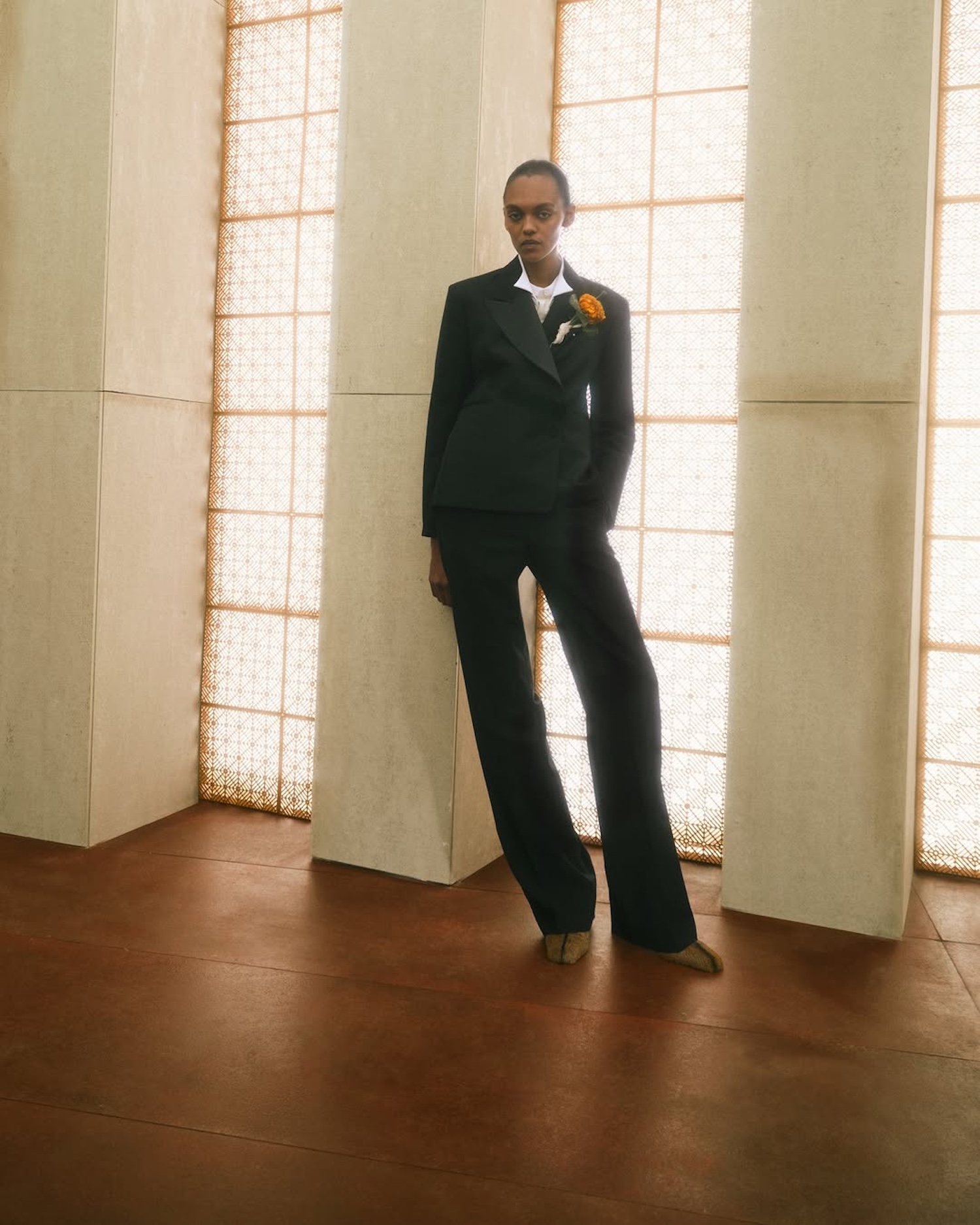 Comme souvent chez Wales Bonner, la collection se nourrit d’un riche croisement de cultures. Les influences circulent librement entre l’architecture indienne, les savoir-faire artisanaux africains, la tradition textile britannique et l’héritage du jazz américain. Ces références ne s’additionnent pas, elles se répondent, construisant un langage visuel cohérent et profondément personnel.