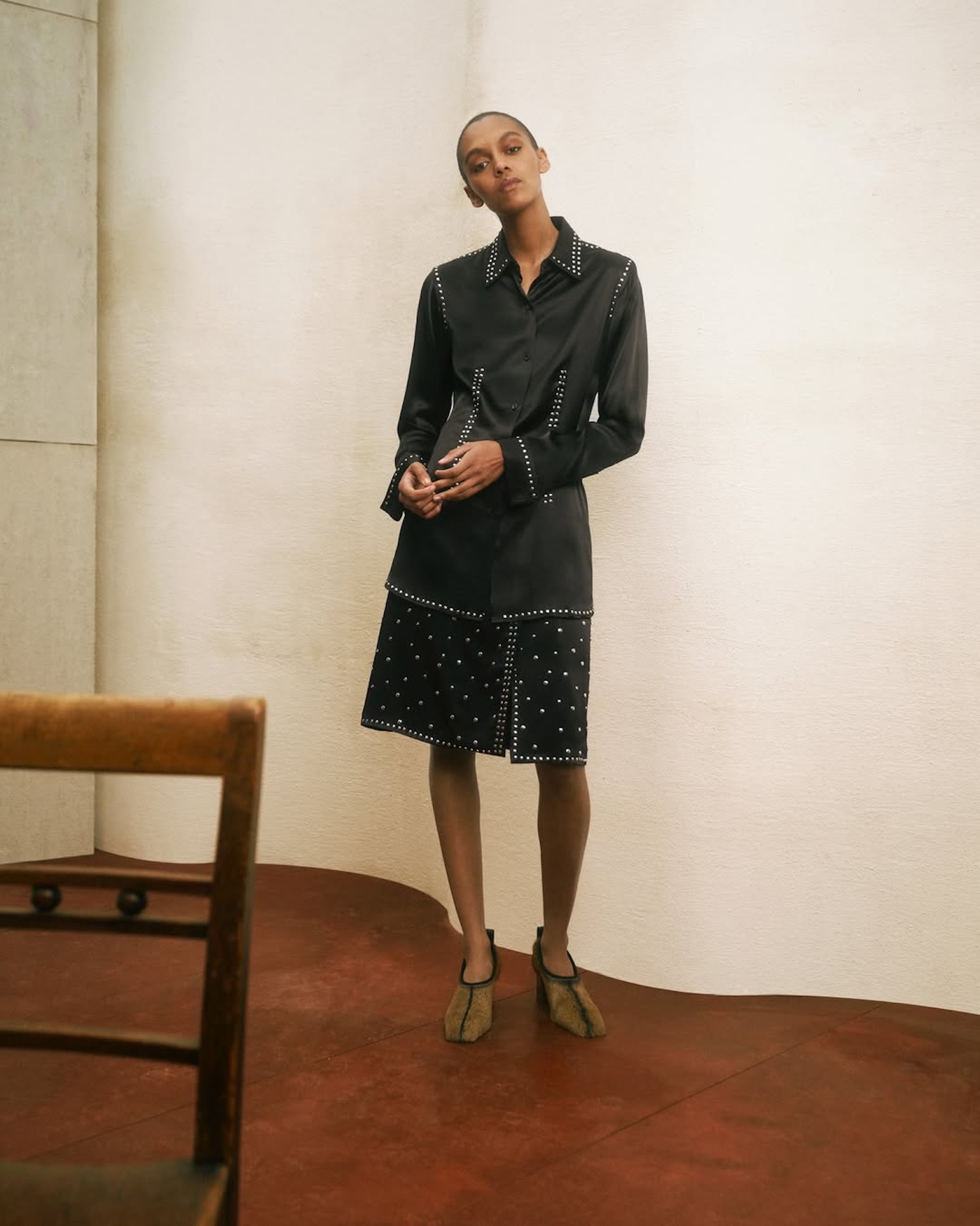 L’atmosphère accentue cette dimension spirituelle et introspective. Portée par une bande-son jazz aux résonances méditatives (John Coltrane’s ‘Meditations’), mêlant improvisation et profondeur émotionnelle. La musique, comme les vêtements, semblait chercher un point d’équilibre entre rigueur et abandon.