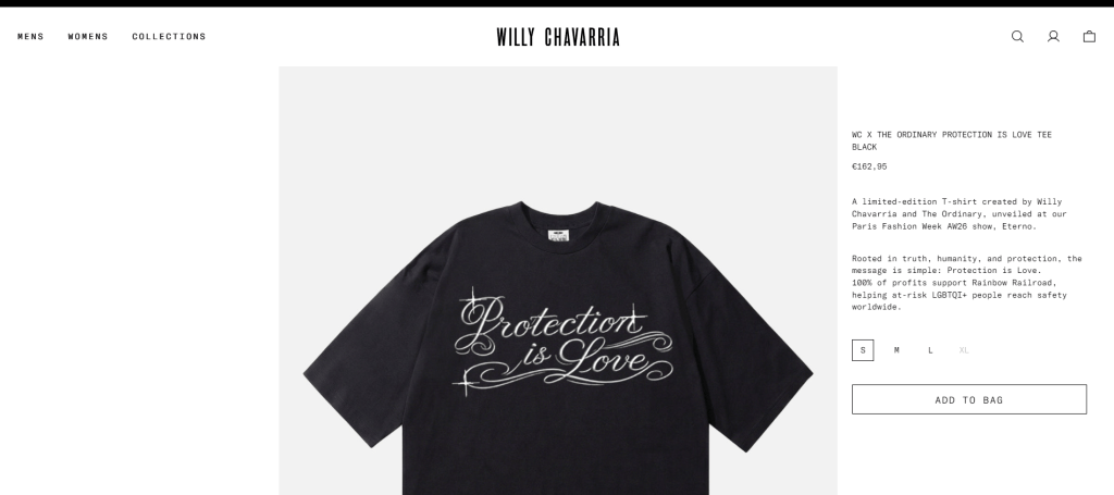 Ce T-shirt n’est pas un simple vêtement : il porte un nom, un sens, une intention. Ce n’est pas seulement une pièce à ajouter à son dressing, mais une déclaration, un signe visible de soutien à celles et ceux qui vivent dans des contextes de danger et d’exclusion. Le choix de Willy Chavarria, dont le travail explore depuis toujours les intersections entre identité, communauté et esthétique — donne à cette collab une profondeur rare dans un univers où les engagements sont trop souvent symboliques.