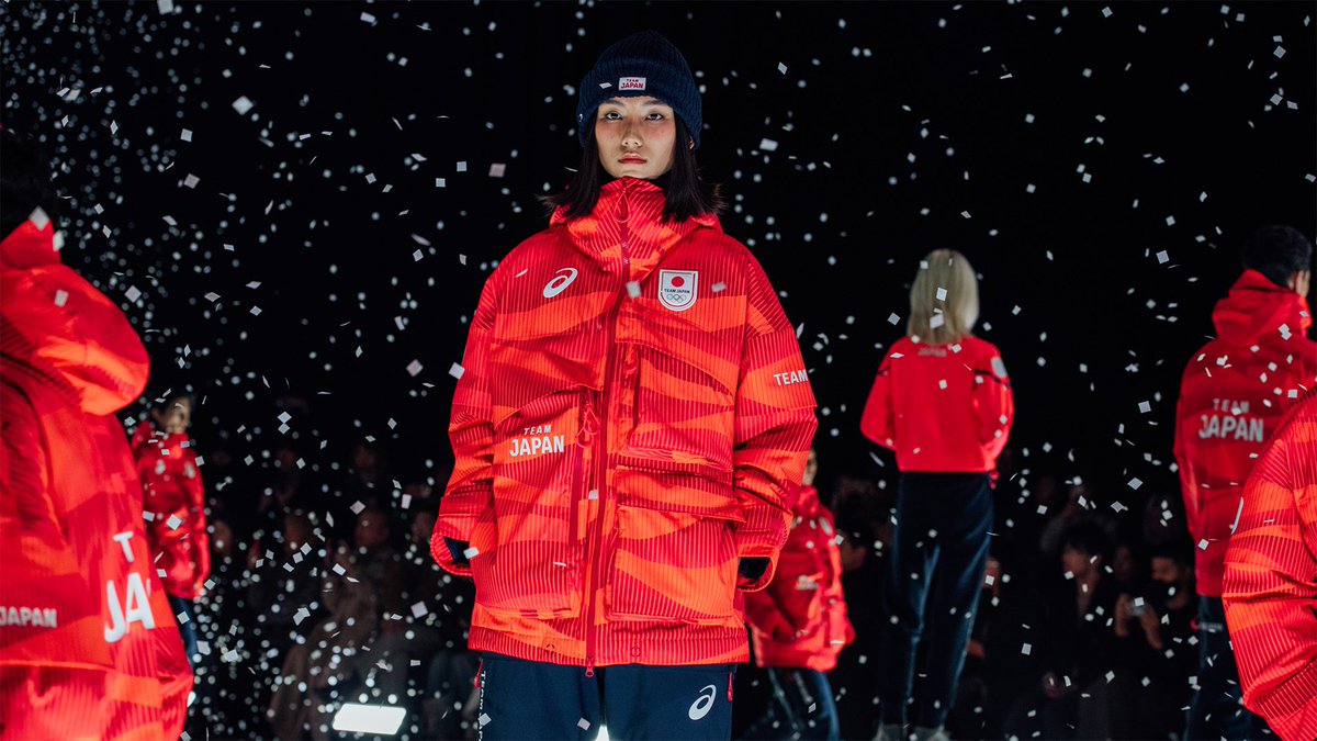 Pour le Japon, Asics propose une approche à la fois symbolique et technologique. Les tenues s’articulent autour de dégradés de rouge, directement inspirés du soleil levant, emblème central du drapeau nippon. Chaque silhouette est pensée pour s’adapter aux différentes disciplines, avec des variations de coupes, de textiles et de niveaux de protection thermique. La marque met également en avant son engagement environnemental, en privilégiant des matériaux responsables et des procédés de fabrication plus durables, inscrivant ces uniformes dans une vision contemporaine du sport, où la performance ne se dissocie plus de l’éthique.