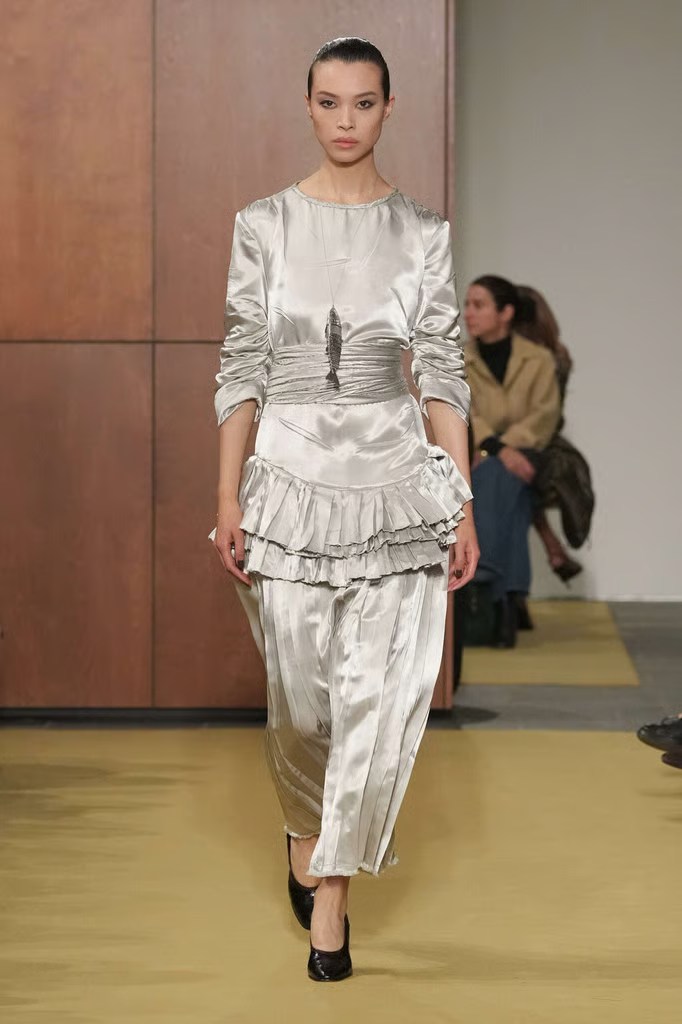 Un autre moment marquant fut le défilé de Proenza Schouler, dont l’ancrage dans une modernité raffinée continue de définir une certaine idée de la femme contemporaine. Lignes nettes, matériaux contrastés et jeux de textures se répondent dans une collection qui mêle rigueur et fluidité. Il y a une façon presque architecturale de concevoir le vêtement chez Proenza Schouler, où chaque pièce trouve sa place dans un ensemble cohérent, sans jamais sacrifier l’individualité de celui qui la porte. Cette tension maîtrisée entre structure et mouvement donne un vestiaire immédiatement reconnaissable et profondément désirable, ancré dans l’esthétique de la ville qui l’a vu naître.