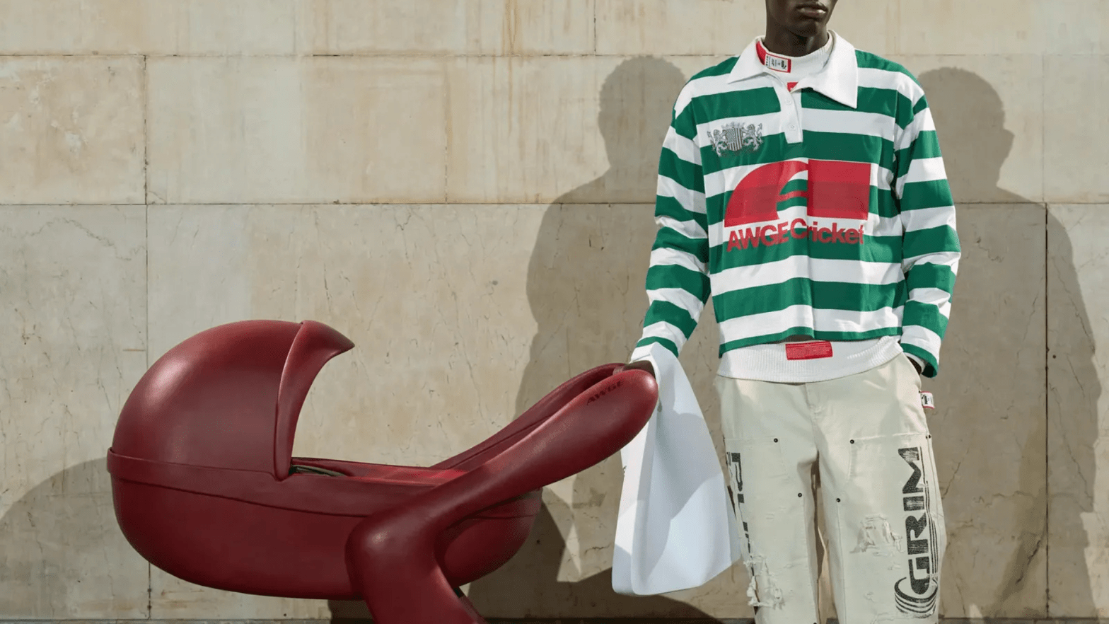 On y retrouvait des accessoires volontairement décalés et presque surréalistes, comme des sacs fourre-tout géants recouverts de fausse fourrure, des cravates, des porte-bébés, des poussettes et même des parapluies intégrés aux looks. Certains sacs bandoulière étaient pensés pour ressembler à des étuis de lunettes Ray-Ban, clin d’œil logique puisque Rocky est aussi directeur artistique de la marque. Derrière l’aspect parfois drôle et absurde, le propos était en réalité très clair : montrer des hommes dans des situations du quotidien souvent invisibilisées dans la mode, comme porter un bébé ou pousser une poussette, mais en le faisant avec style. En filigrane, la collection reflétait parfaitement les multiples facettes d’A$AP Rocky lui-même : entrepreneur, icône mode, figure de la pop culture, mais aussi père. AWGE n’était pas juste un défilé, c’était presque une performance, une réflexion sur l’image, le regard, et sur ce que la mode choisit de montrer ou de cacher.