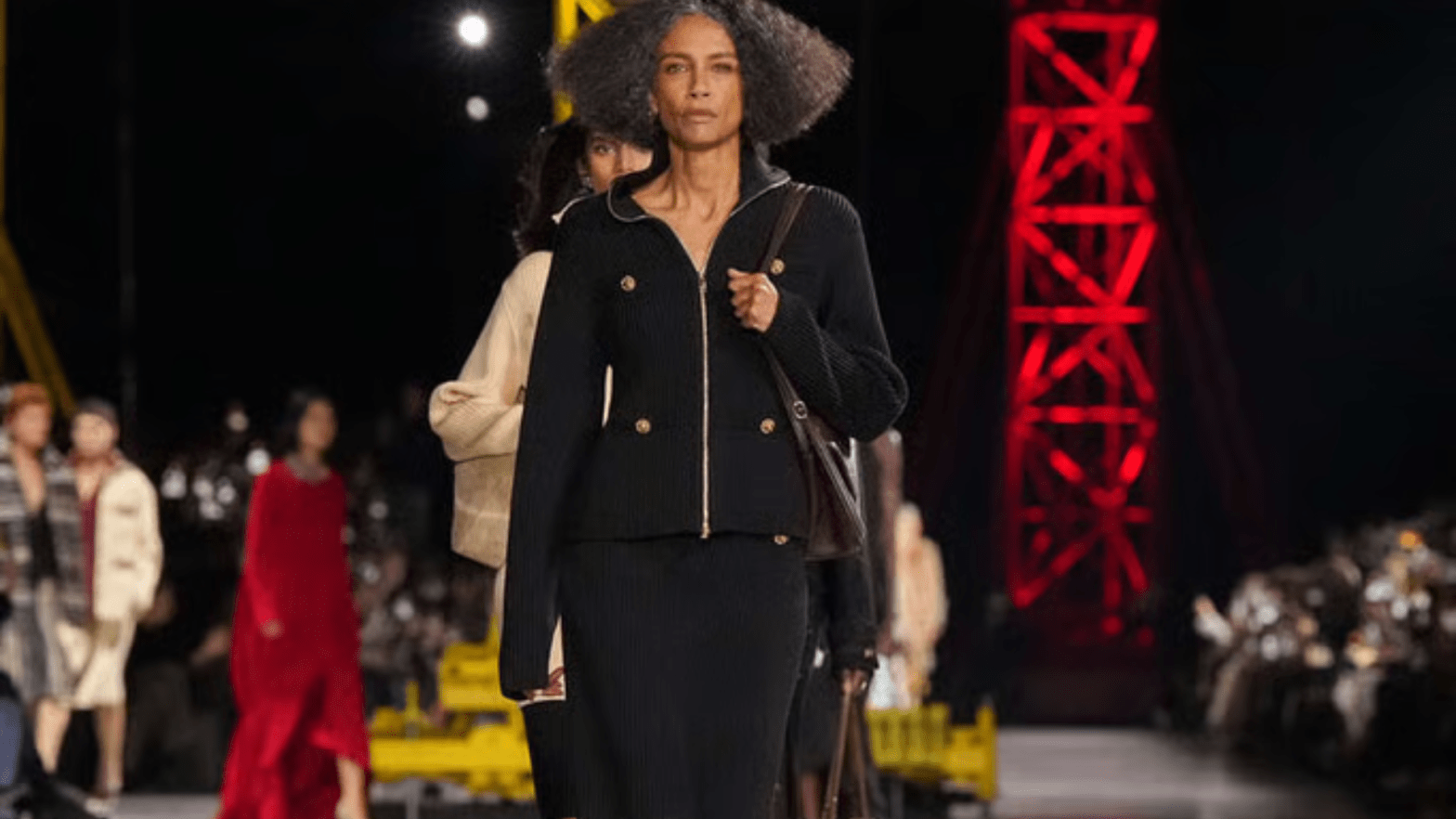 Le défilé s’est tenu au Grand Palais, décoré pour l’occasion comme un immense chantier symbolique. Des grues colorées et une scénographie presque industrielle évoquaient l’idée d’une maison en pleine reconstruction — une métaphore évidente du moment que traverse Chanel.