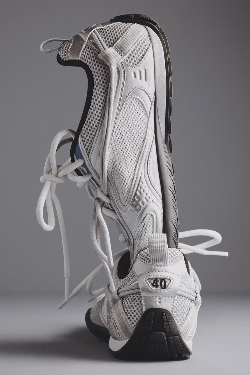 Mais la surprise ne s’arrête pas là. Balenciaga a également dévoilé une seconde version baptisée Radar Ballerina. Comme son nom l’indique, cette variation transforme la sneaker en une silhouette encore plus fine, inspirée de la ballerine. Le résultat se situe quelque part entre une chaussure de sport et une ballerine contemporaine, un hybride qui illustre parfaitement l’évolution actuelle du footwear.