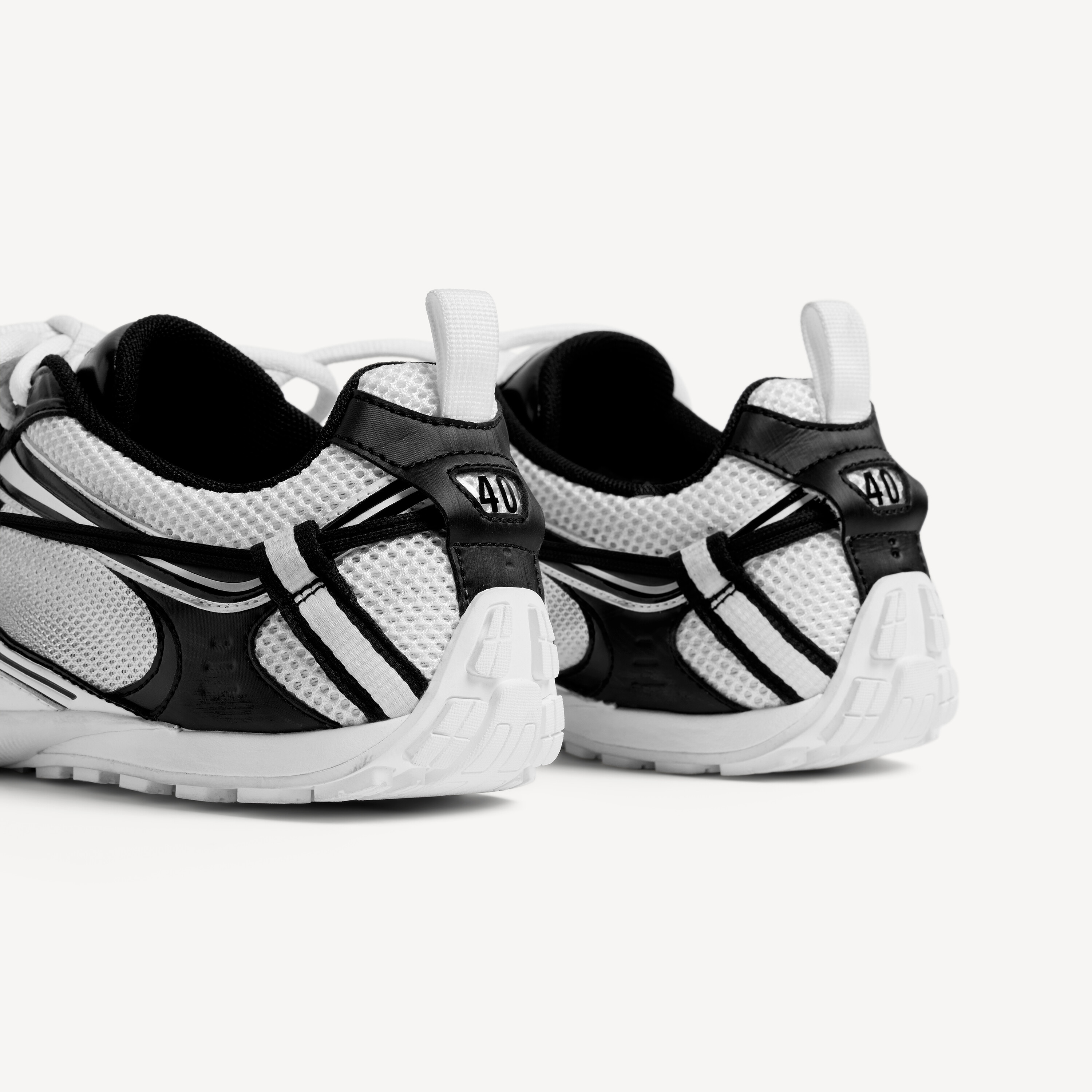 Le nom Radar n’a pas été choisi au hasard. Il fait référence à la technologie de détection et de repérage, une idée qui traduit la volonté de créer une chaussure conçue pour accompagner le mouvement du corps avec précision et fluidité. La silhouette semble presque épouser le pied, donnant l’impression d’une chaussure conçue pour la vitesse et l’agilité.