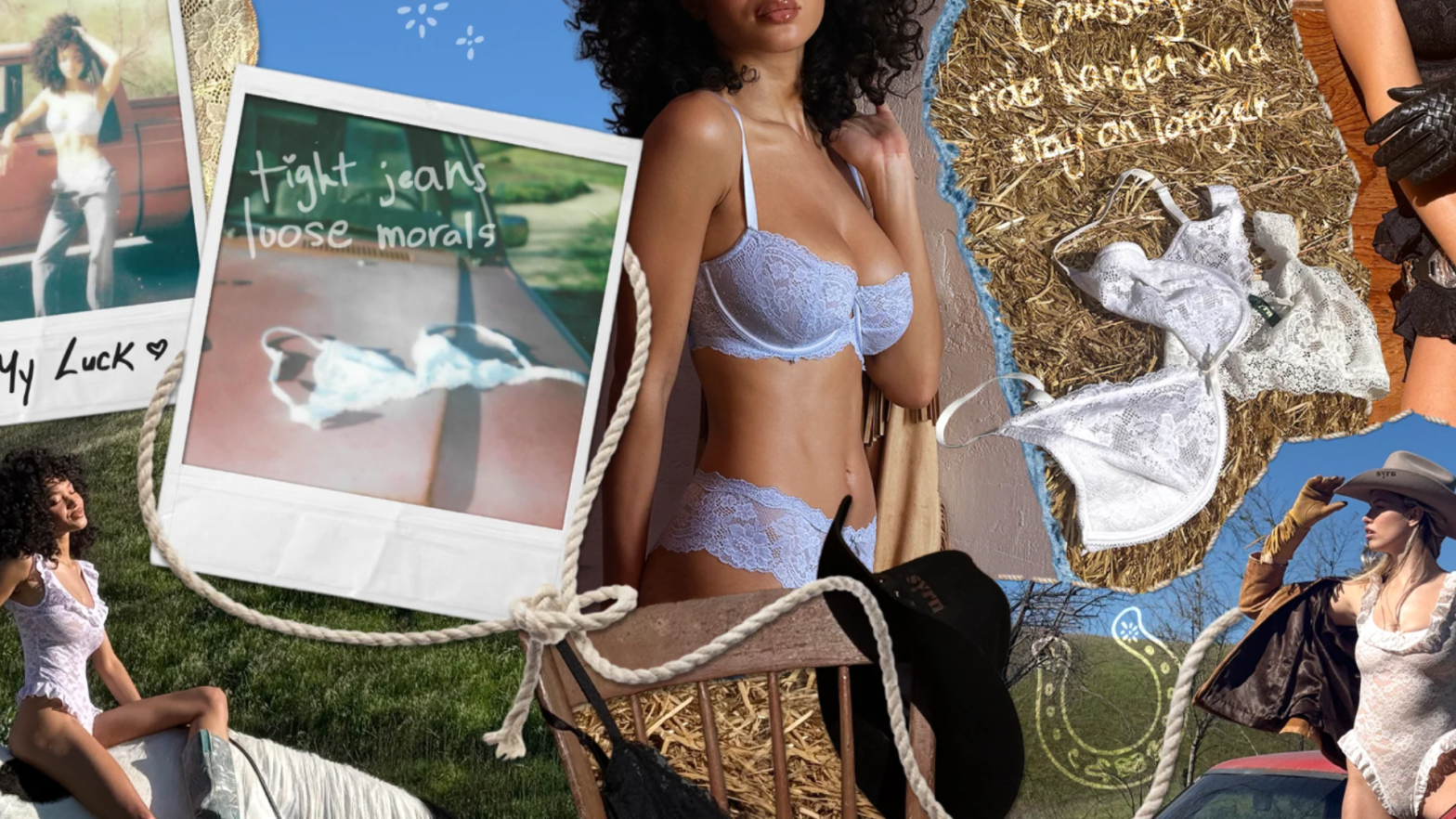 Pensée pour la saison des festivals, cette collection s’inscrit dans une esthétique très précise. Une inspiration western revisitée, loin des clichés, plus douce, plus intime. Les pièces, restent fidèles à l’ADN de la marque : bodys seconde peau, ensembles en dentelle délicate, corsets structurés. Un vestiaire qui joue sur la tension entre sensualité et maintien, entre liberté et construction.
