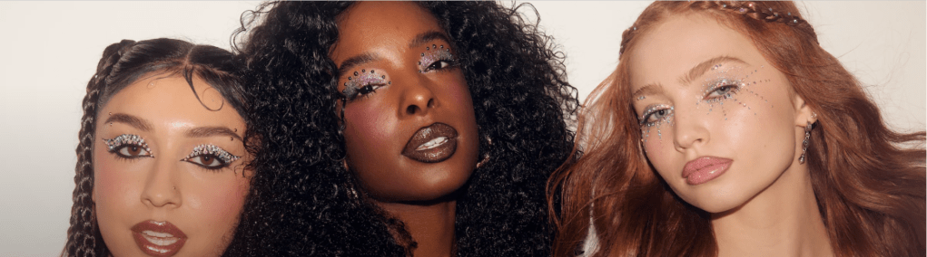 Autour, tout l’ADN Euphoria est là. Des glitters multi-usages, des liners liquides irisés, des face gems autocollants, mais aussi des produits teint lumineux aux reflets rosés ou holographiques. Une esthétique volontairement excessive, assumée, où le maquillage devient presque une performance.