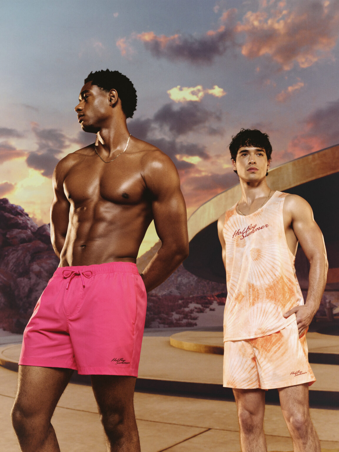 Avec ce nouveau drop, l’artiste ne se contente plus de proposer du swimwear. Elle élargit son univers. Désormais, la collection inclut des pièces pour hommes : shorts de bain, tank tops, mais aussi, plus inattendu, une ligne pour animaux, avec t-shirts et “barkinis”.