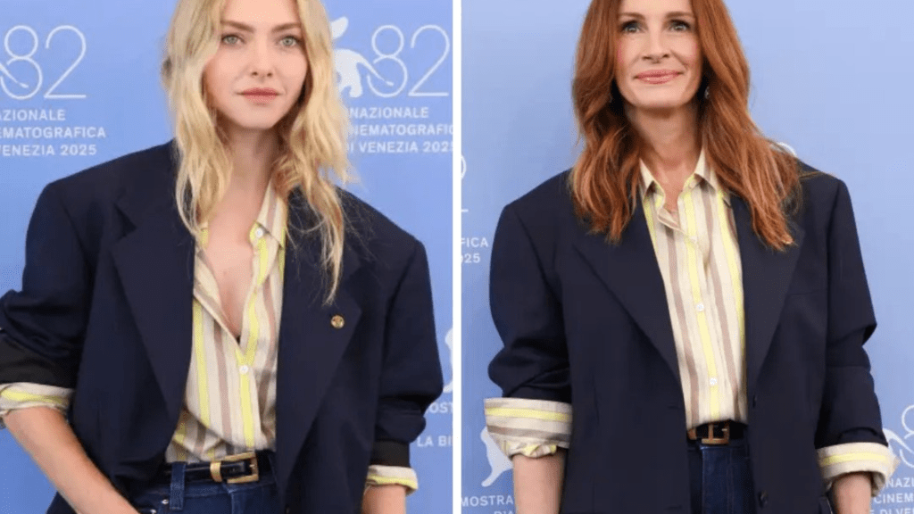 Deux icônes, une même tenue, un seul tapis rouge : impossible de passer à côté de ce fashion plot twist qui a secoué la planète mode. Julia Roberts et Amanda Seyfried sont apparues dans la MÊME tenue Versace, à seulement deux jours d’écart, et au même événement. Oui, vous avez bien lu. Mais attention, ce n’est pas juste une coïncidence gênante…