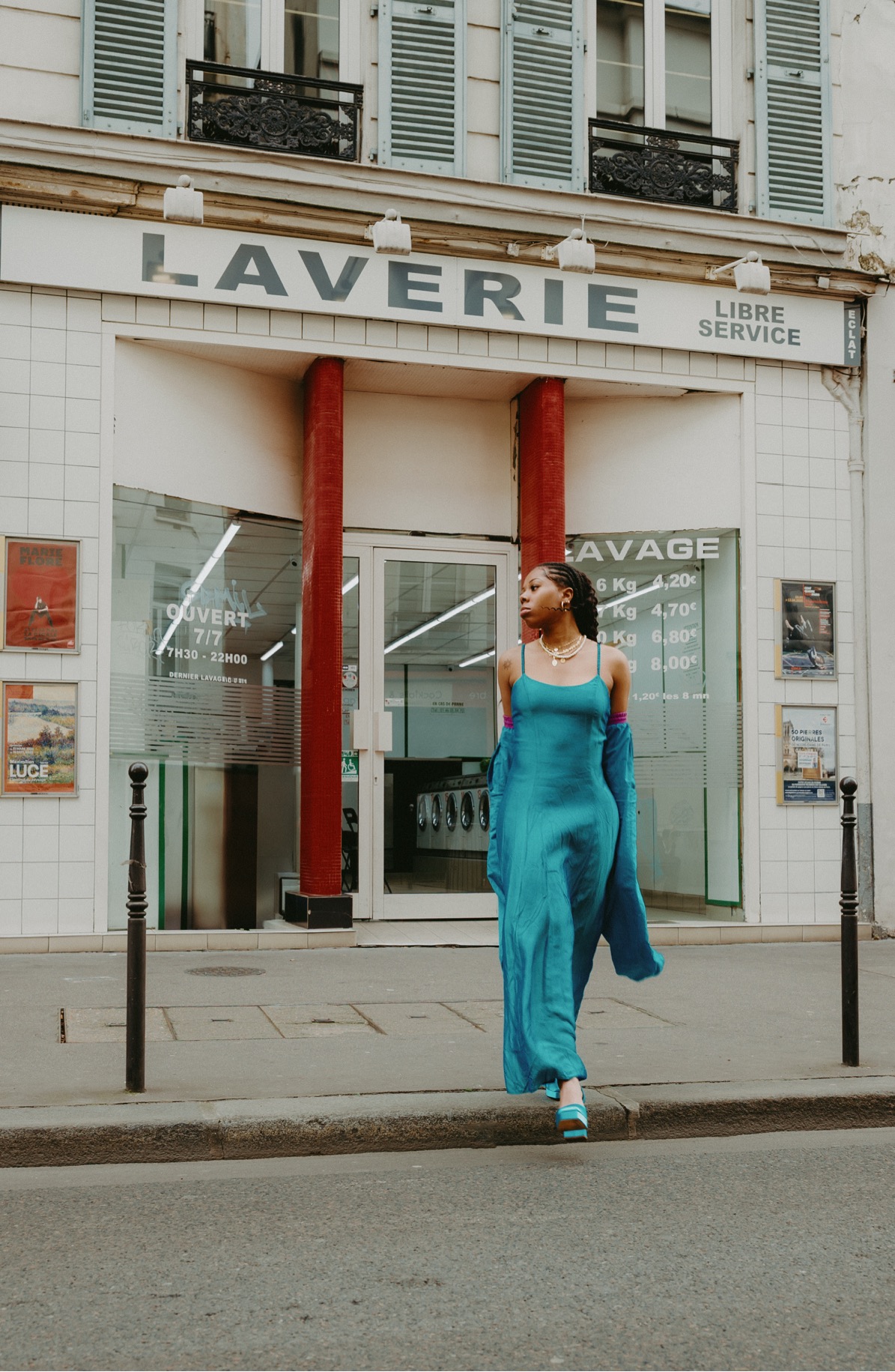 Shooting pour le magazine The Rubber Opal avec une robe crée par la fondatrice du magazine Meg-Elizabeth.
